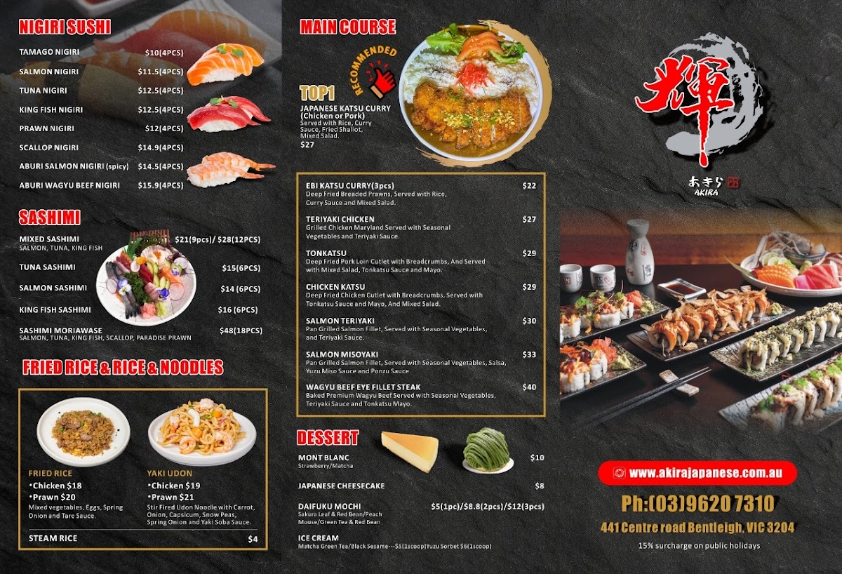 Welcome to Akira Japanese Restaurant & Bar, a culinary gem nestled in Bentleigh, VIC. This charming establishment offers an innovative menu that exquisitely showcases traditional Japanese flavors with a modern twist. From the moment you step in, the ambience reflects a sophisticated yet welcoming atmosphere.